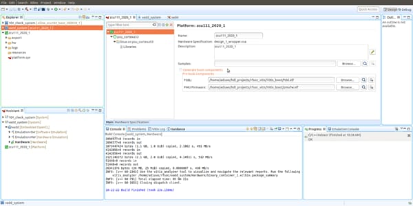 Once the software algorithms are implemented, the developer can use the software and hardware emulation flows provided by Vitis to optimize the algorithm for implementation in the programmable logic before generating the final boot image (Figure 5).